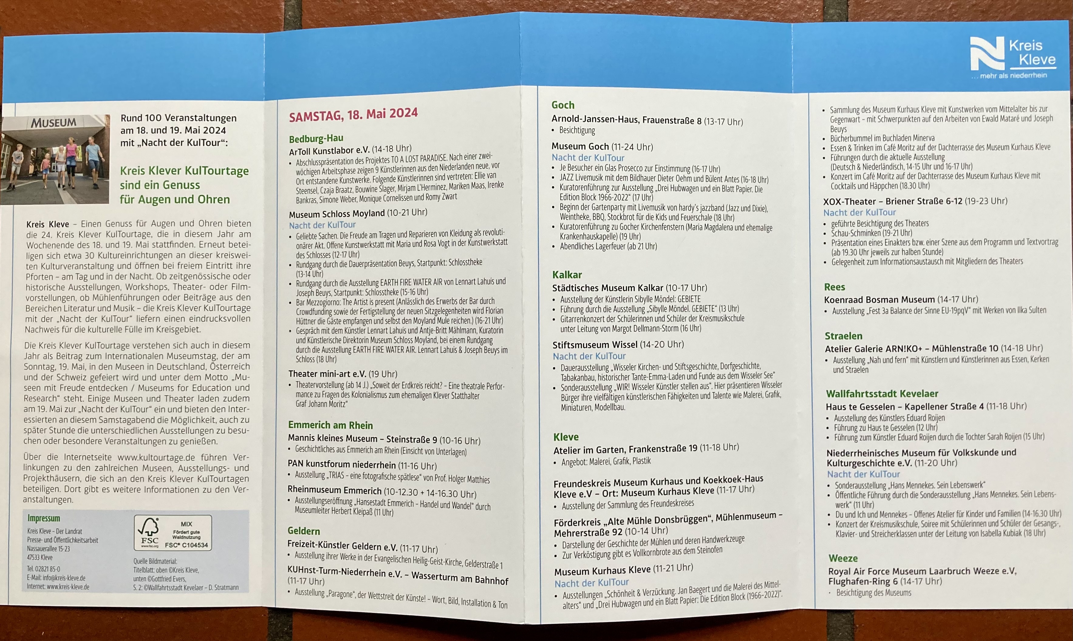 Informationen zu den Kreis Klever KulTOURtagen finden Sie hier: Flyer Klever KulTourtage